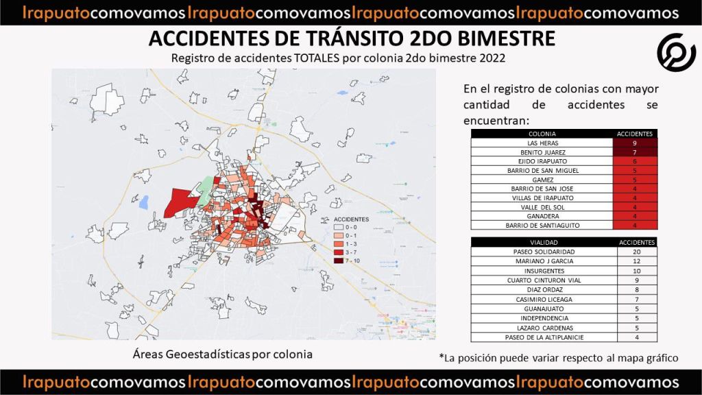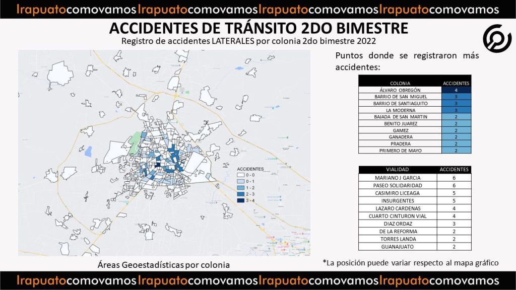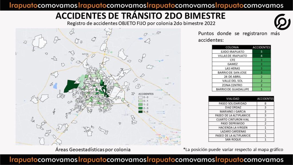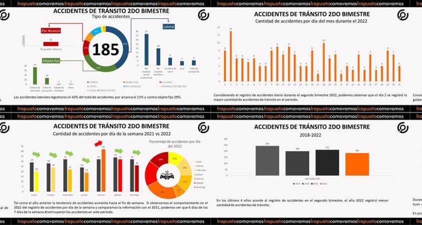 El Observatorio ciudadano Irapuato ¿Cómo vamos?, presenta el reporte de accidentes de tránsito del segundo bimestre del 2022.