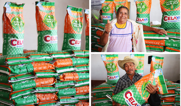 En la comunidad de Roque se realizó la entrega de 526 sacos de semilla híbrida de maíz blanco, lista para su siembra, a 300 productores: un saco por hectárea pudiendo recibir hasta 3 sacos o costales.
