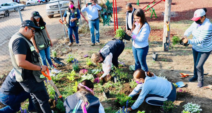 El parque vecinal de la comunidad Tinaja de Bernales, tras su embellecimiento como parte del programa ‘Yo puedo, Guanajuato puede’, ahora cuenta también con un nuevo jardín polinizador.