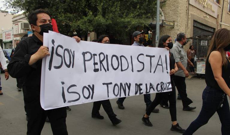 Un centenar de reporteros marcharon para exigir justicia por Antonio de la Cruz, periodista asesinado en Ciudad Victoria, capital de Tamaulipas.