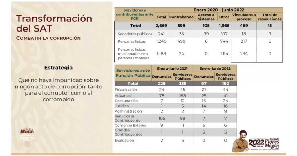 Durante la presentación del informe del SAT por 25 años, detalló que de estas denuncias, 599 son por contrabando y 105 por uso ilegal en el acceso a los sistemas. Ahondó que otras 326 corresponden a defraudaciones fiscales que provienen de empresas internacionales.