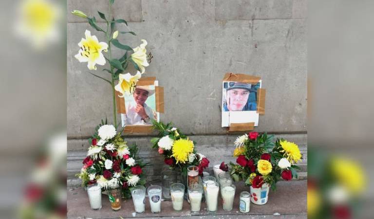 Actualmente se aprecian varias veladoras e incluso flores, aunque este fin de semana ya solo había las imágenes de dos de ellos.