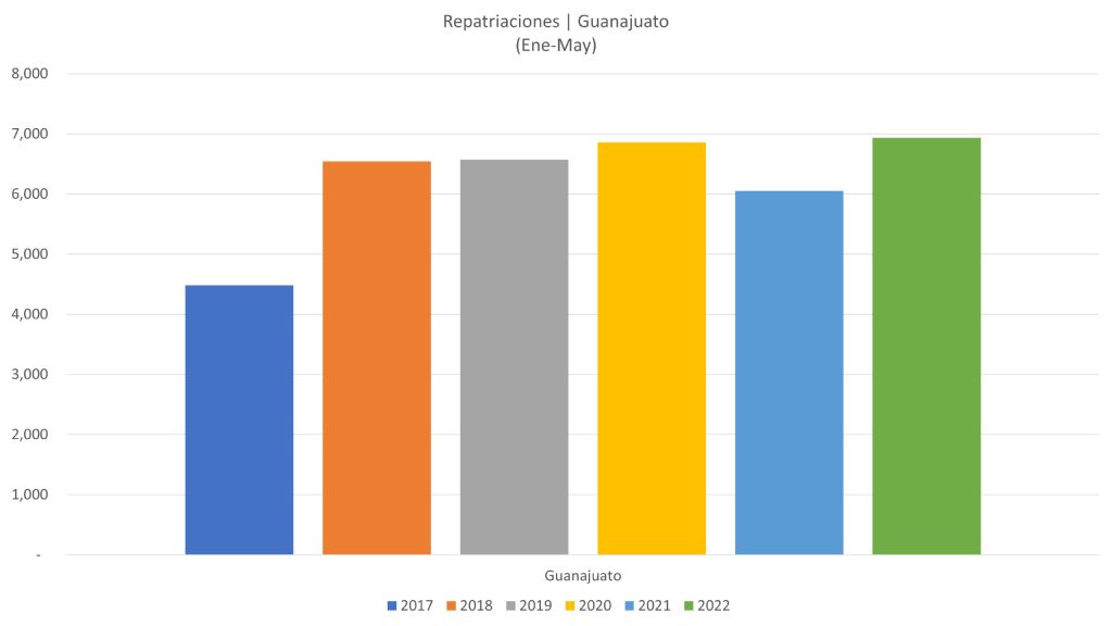Cerca de 7 mil guanajuatenses, entre los meses de enero a mayo de este año, han sido retornados desde Estados Unidos y Canadá. Así lo indica el reporte de la Unidad de Política Migratoria (UPM).