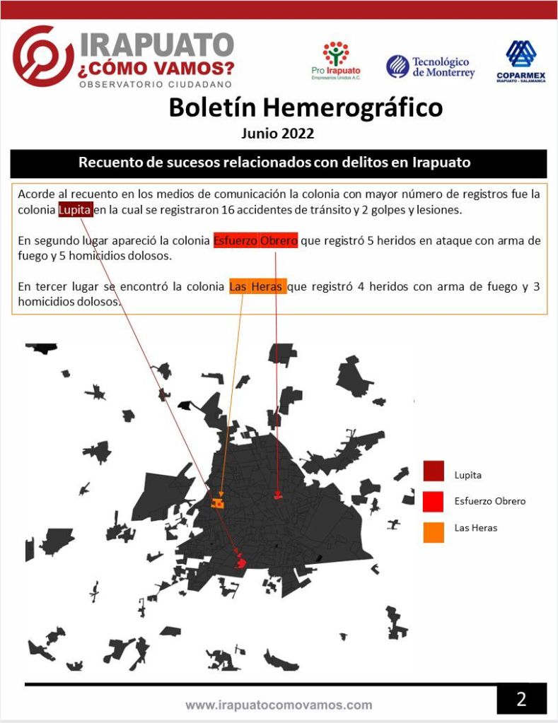 El Observatorio ciudadano Irapuato ¿Cómo vamos?, presenta el Boletín Hemerográfico del mes de junio 2022.