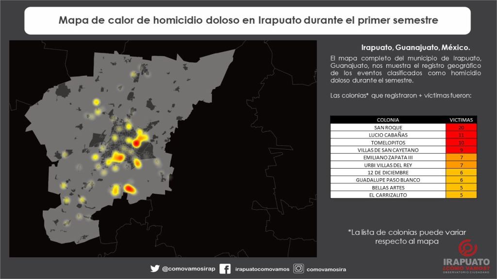El reporte semestral de víctimas por homicidio doloso presenta la información condensada del registro de víctimas y eventos acontecidos en el municipio de Irapuato, Guanajuato durante este periodo.