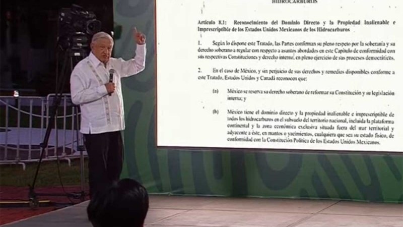 «El gobierno anterior había ofrecido un capítulo especial del tratado entregando el petróleo, así de claro, nosotros estábamos como observadores porque aún era presidente electo, cuando Jesús Seade me informa que hay esta propuesta le pido que venga a México y se analiza el capítulo que ya habían aceptado las autoridades mexicanas en ese entonces, de manera especial el secretario Videgaray y Guajardo y nosotros dijimos que no estábamos de acuerdo, se molestaron los negociadores del gobierno de Estados Unidos y se levantó la mesa (…), ellos no querían informarle al presidente Trump porque creían que se iba a agravar la situación y la respuesta del presidente Trump es que se aceptara lo que nosotros decíamos y por eso el capítulo se limita a dos párrafos”, señaló.