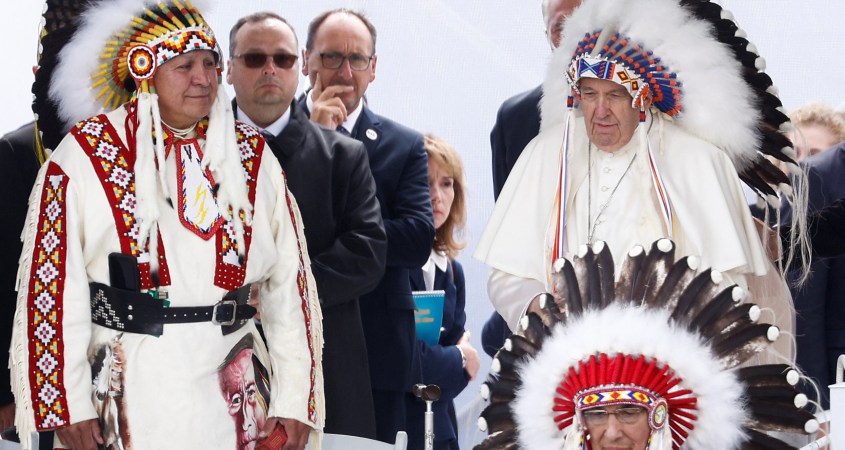 Francisco arrancó su gira de seis días en Maskwacis, provincia de Alberta, a unos cien kilómetros al sur de Edmonton, donde se encuentra la antigua escuela residencial de Ermineskin, una de las más grandes de Canadá, abierta de 1895 a 1975. Después de una oración silenciosa en el cementerio, pronunció su primer discurso, en español, ante unas 15.000 personas, entre ellas antiguos alumnos de los pensionados indígenas. El Papa pidió perdón por el “mal cometido por tantos cristianos contra los pueblos indígenas” de Canadá, y lamentó la cooperación de la Iglesia en lo que calificó de “destrucción cultural.”