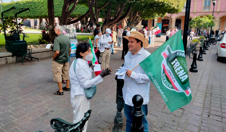 De manera pacífica las no más de 40 personas que se dieron cita en el jardín, colocaron mantas y con un altavoz hacían un llamado a la ciudadanía para que se una a la exigencia al gobierno mexicano y que haya paz y seguridad en todo el país.