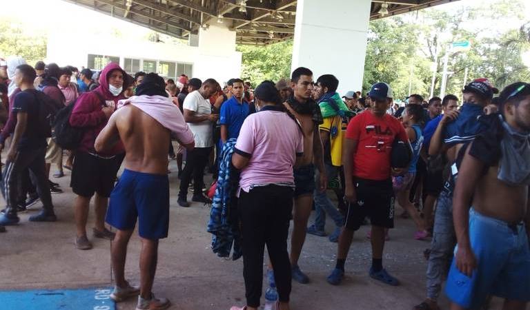Ante la desesperación, integrantes de las caravanas de más de tres mil migrantes que salieron desde Tapachula y que llevan poco más de 24 horas en el municipio de Huixtla, en la aduana Cerro Gordo, buscan que el Instituto Nacional de Migración (INM), les otorgue la llamada Forma Migratoria Múltiple (FMM), y al no encontrar respuesta decidieron ingresar por la fuerza a las instalaciones de dicho lugar.