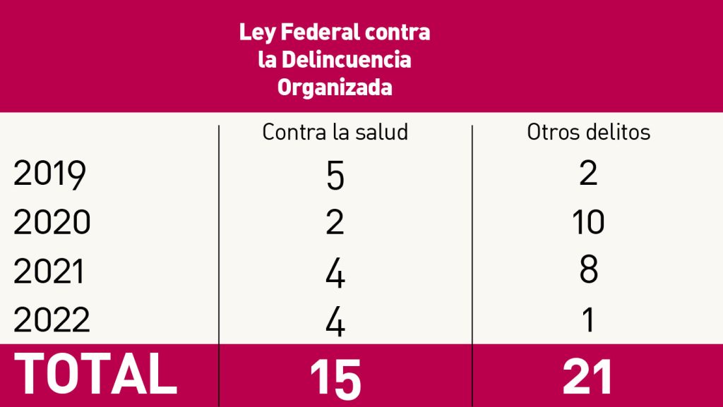 De las 36 investigaciones por delincuencia organizada en Guanajuato en lo que va del sexenio, 15 tuvieron que ver con delitos contra la salud y 21 con otros delitos.