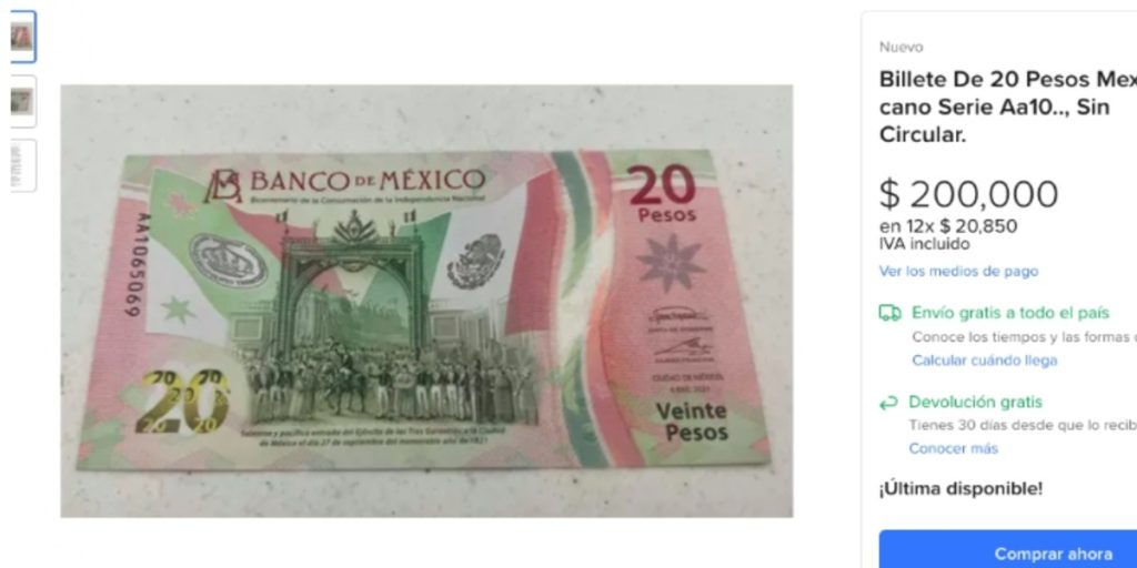 En una publicación dirigida a los coleccionistas se oferta un billete de 20 pesos serie AA10, la cual identifica al papel moneda como uno de los primeros emitidos por el Banco de México.