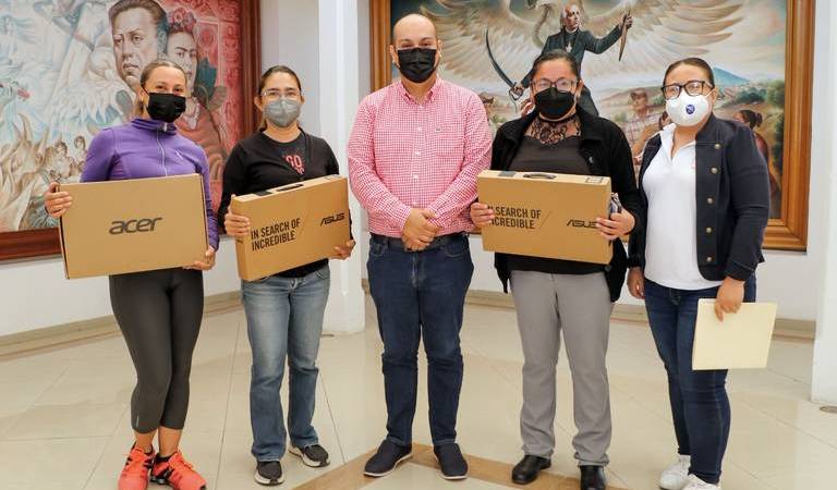 Con el objetivo de incentivar a los jóvenes para que continúen sus estudios, el presidente municipal de Cortazar, Ariel Corona, hizo la entrega de tres computadoras portátiles a las madres de tres alumnas con el mejor promedio de la generación 2019-2022 del Centro de Estudios Científicos y Tecnológicos (CECYTE).