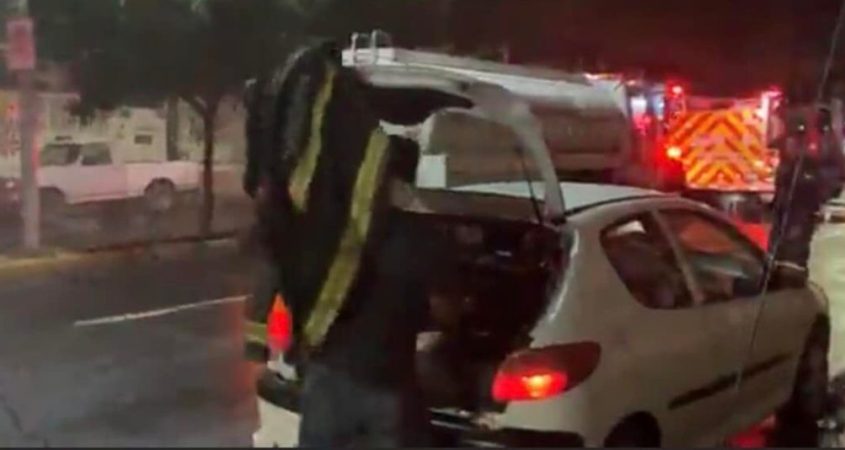 El usuario Emmanuel Forestal compartió a través de sus redes sociales la imagen de un bombero que llegó al bulevar Díaz Ordaz con collarín y en su vehículo particular para apoyar a apagar el fuego en el camión de personal que se incendiaba en la zona.