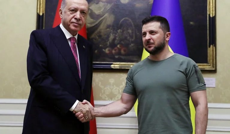 Erdogan se ha involucrado en un delicado acto de equilibrio, manteniendo buenas relaciones tanto con Rusia como con Ucrania. Turquía ha proporcionado a Ucrania drones, que jugaron un papel importante en la disuasión de un avance ruso al principio del conflicto, pero se ha abstenido de unirse a las sanciones occidentales contra Rusia por la guerra.