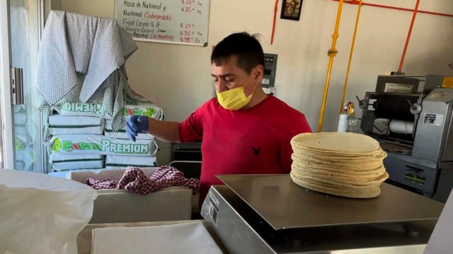 El negocio familiar del comerciante ha mantenido el precio en 29 pesos (1.45 dólares), pero otras tortillerías han cerrado o han despedido empleados.
