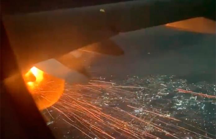 Se incendió turbina de un avión de la línea Viva Aerobús (Fotos: Capturas de pantalla de Twitter/@BELLATRIX_RAZO)