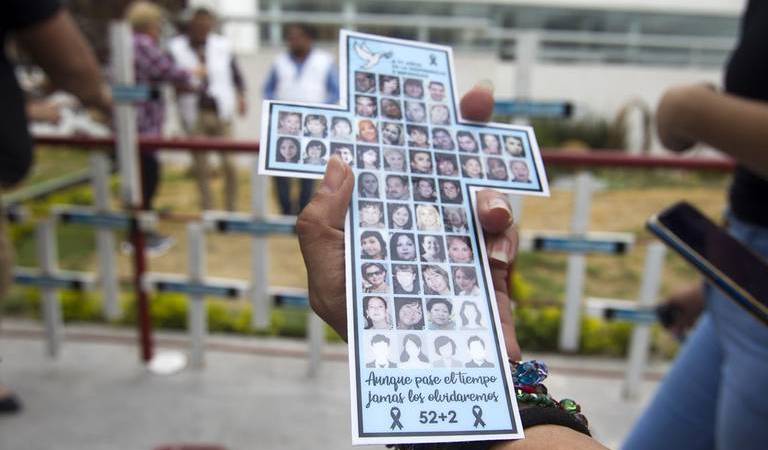 Además, de pedir justicia después de más de una década de la tragedia, las familias colocaron ofrendas florales, escribieron sus nombres sobre unas huellas pintadas en color rojo en el piso, donde se instaló nuevamente el memorial de cruces que había sido retirado y que ahora permanecerá en el lugar donde se encontraba el casino.