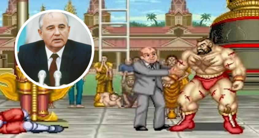 Así es… muchos recordar que el videojuego traía a un luchador soviético, mejor conocido como Zangief, quien era felicitado, cada vez que ganaba, por un personaje que bajaba de un helicóptero, esa persona era el fallecido Mijaíl Gorbachov.