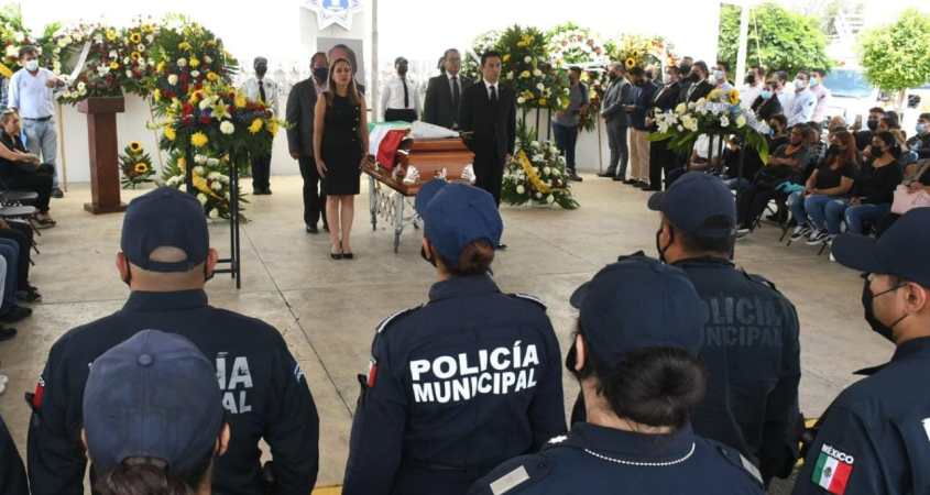 Para rendir un reconocimiento por su entrega, autoridades municipales encabezaron la guardia de honor, en compañía de su familia.