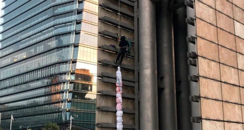 El colectivo ‘Hasta encontrarte’ de Guanajuato acudió hasta la Estela de Luz en la Ciudad de México (CDMX) para desplegar una manta de protesta por los desaparecidos y contra la militarización en México.