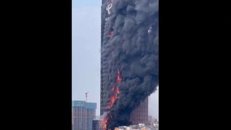 El edificio, de 42 plantas en la superficie, formaba parte de la empresa estatal de telecomunicaciones China Telecom y en redes sociales se volvieron virales los videos de las llamas arrasando todo un costado del edificio.