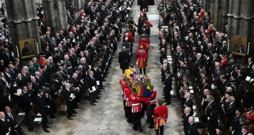 Desde la Abadía de Westminster, donde una de las campanas sonó 96 veces, por cada año de su vida, el carruaje de armas con el ataúd de la Reina, fue llevado a la última procesión por el corazón de Londres.