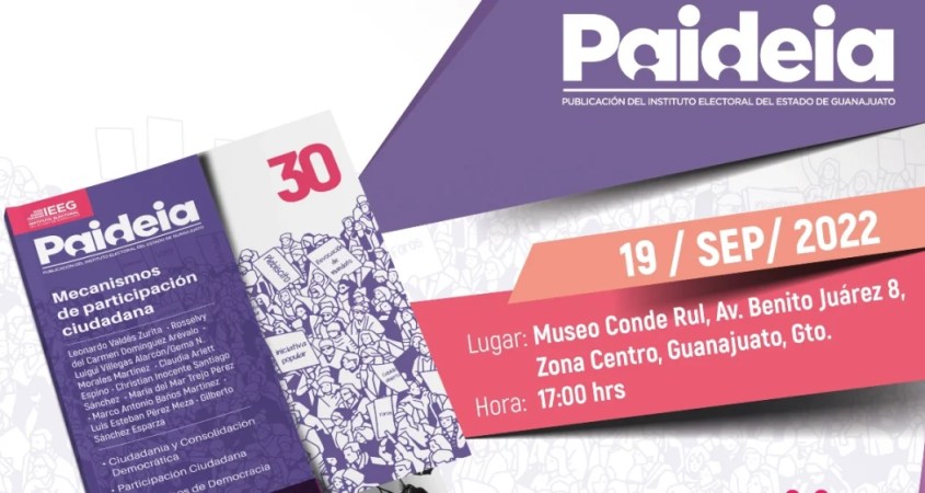 A 12 años del primer lanzamiento de la revista Paideia, el Instituto Electoral del Estado de Guanajuato (IEEG) llevó a cabo la presentación de la edición número 30, que está dedicada a los mecanismos de participación ciudadana.