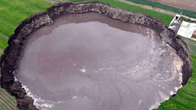 El socavón había mantenido hasta este lunes las mismas medidas de su diámetro calculadas en 126 metros en su eje mayor y 123 metros en el menor, según lo informado en su momento por la Secretaría de Gobernación estatal.