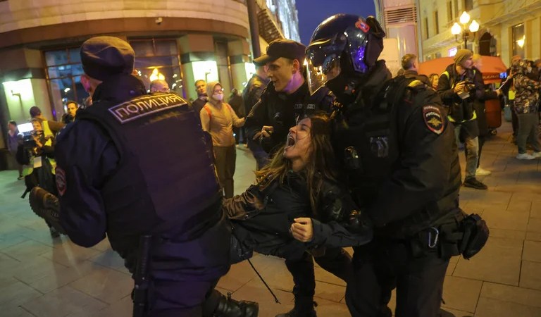 Vesná afirma que la movilización parcial de Putin significa que “miles de hombres rusos, nuestros padres, hermanos y esposos, serán arrojados a la picadora de carne de la guerra.Represión en protestas en Rusia