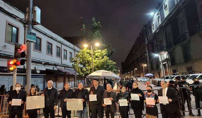 Precvio a la conferencia matutina del mandatario se reunieron afuera del inmueble también Luz Dary Quevedo, Julio César Solis, Tania Valentina Rodríguez, Paola Cruz, Macrina Vallejo, Oscar Cano, Alejandro Bermúdez, Agustín Alonso, y Alberto Sánchez.