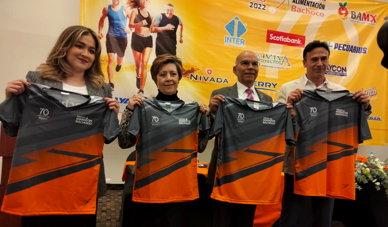 El próximo 27 de noviembre se llevará a cabo el Medio Maratón Bachoco 2022 “Unidos por la Alimentación”, edición 70 aniversario, evento deportivo donde el 100% de los fondos que se recauden se destinarán a la compra de granos de la canasta básica para apoyar a Bancos de Alimentos. En la presentación, como invitados de honor, estuvieron la señora Rosa María Suárez de Mendoza y su esposo, el presidente municipal, Javier Mendoza Márquez.