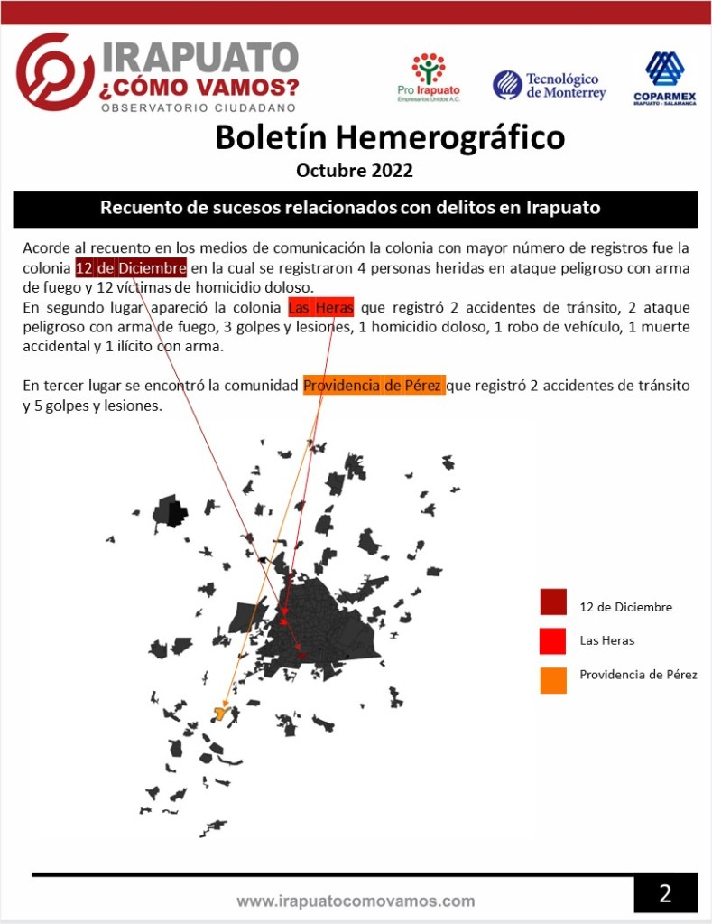 El Observatorio ciudadano Irapuato ¿Cómo vamos?, presenta el Boletín Hemerográfico del mes de octubre 2022.