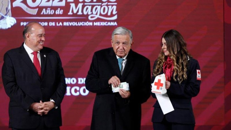 «Empezamos la colecta para la cruz roja, es una labor muy noble, y llamar a todos los mexicanos a participar, ayudar porque se trata de que nos atiendan en emergencias, que nos cuiden, que exista este servicio humanitario que se sostiene con la cooperación, con el apoyo de todos los ciudadanos”, sentenció López Obrador.