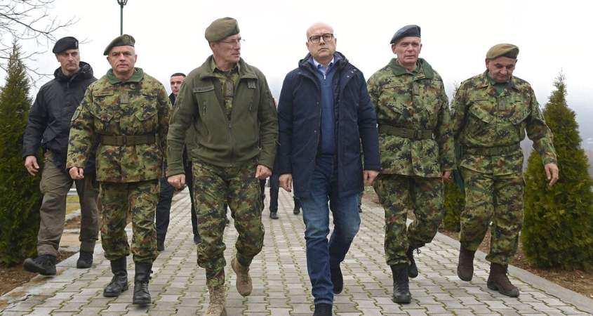 El ministro de Defensa de Serbia y el jefe del Estado Mayor del Ejército acudieron a la frontera con Kosovo, donde elogiaron la preparación de los soldados serbios para combatir y su poder de fuego, el cual incluye obuses y otras armas. Serbia, cuyo armamento proviene de donativos rusos y adquisiciones militares, ha estado amenazando desde hace tiempo con usar la fuerza en contra de su exprovincia .