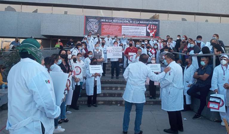 Médicos y trabajadores del ISSSTE realizaron un bloqueo vial debido a que no están de acuerdo con algunas condiciones laborales así como por la falta de insumos.