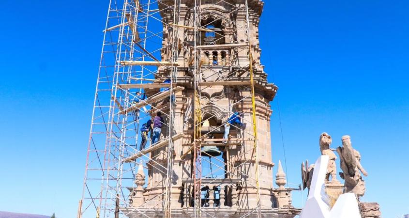 Para poder conservar en buen estado los edificios emblemáticos que forman parte de la historia de Irapuato, el Gobierno Municipal restaura la fachada y la torre del Templo de La Soledad.