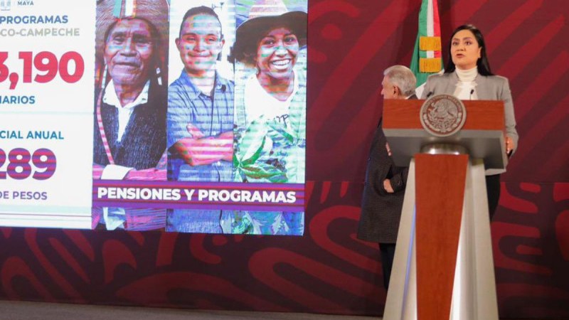 De manera directa y sin intermediarios, el Gobierno de México avanza en la entrega de las Pensiones y Programas para el Bienestar en el tramo 1 del Tren Maya, que va de Palenque a Escárcega y contempla los estados de Chiapas, Tabasco y Campeche, donde a la fecha se beneficia a dos millones 653 mil 190 personas con inversión social anual de 53 mil 289 millones de pesos, informó la secretaria de Bienestar, Ariadna Montiel Reyes, en la conferencia de prensa matutina del presidente Andrés Manuel López Obrador.