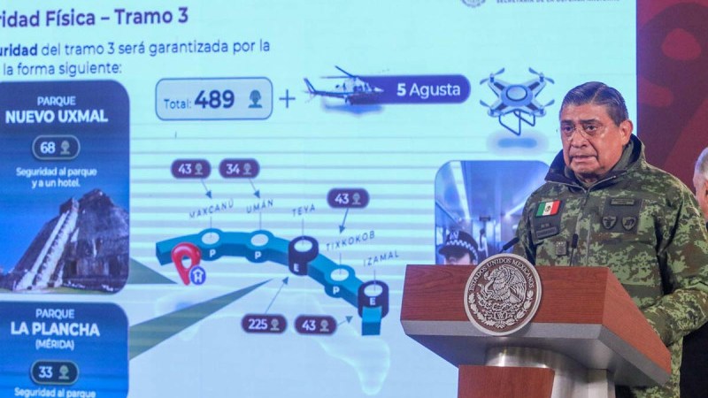 El titular del ejército mexicano, señaló que dicha vigilancia estará a cargo de la Guardia Nacional, y que se estarán desplegando un total de 489 elementos en el tramo 3 del tren, el cual va desde Calkiní, Campeche, a Izamal, Yucatán.