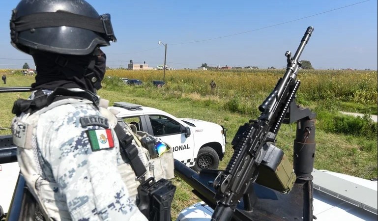 En tanto, la persona que graba el video mueve la cámara hacía su bícep izquierdo en donde lleva una cinta que tiene el escudo de la Guardia Nacional y la siglas GN. Además el movimiento deja ver a otros de sus compañeros que van uniformados de la misma forma.
