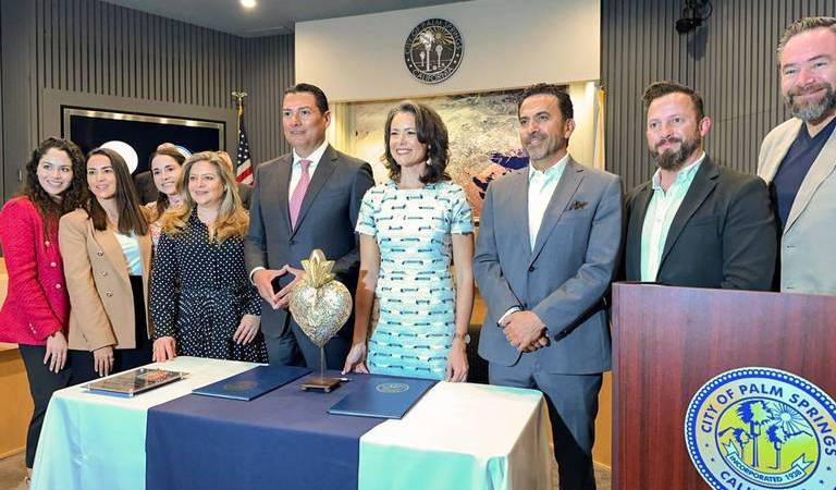Mauricio Trejo presidente municipal de San Miguel de Allende, firmó un nuevo hermanamiento, ahora con la ciudad californiana Palm Springs.