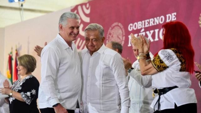 El sábado, el presidente López Obrador condecoró con la Orden Mexicana del Águila Azteca a Díaz-Canel por el apoyo que su administración ha dado para el arribo de médicos cubanos especialistas así como para el balasto para el Tren Maya.