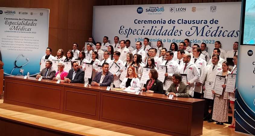 Así lo afirmó en la ceremonia de clausura de cursos de especialidades médicas, en la que felicitó a los 54 residentes que concluyeron su especialidad y le dio la bienvenida a 144 estudiantes que comenzarán su residencia médica en alguna de las seis sedes que tiene la Secretaría de Salud de Guanajuato para ello, entre ellas, el Hospital General de León y el Centro de Atención Integral a la Salud Mental (Caisame).