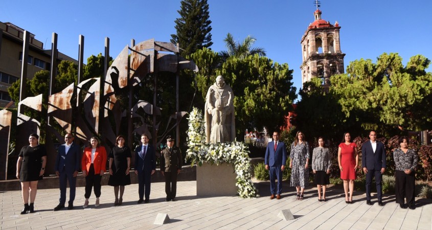 Los festejos por la fundación de Irapuato comenzaron con la ofrenda y la guardia de honor a Vasco de Quiroga en la explanada del Templo del Hospitalito, a cargo de autoridades municipales.