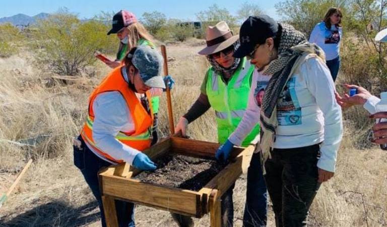 Integrantes de los Colectivos Misioneras Buscadoras Magdalena, Buscadoras por la Paz de Sonora, Agrupación Buscando Personas Desaparecidas, A.C. y Rastreadoras de Caborca, participaban en esta actividad de rastreo, a la que convocaron días previos para lo que denominaron la «Gran Búsqueda».
