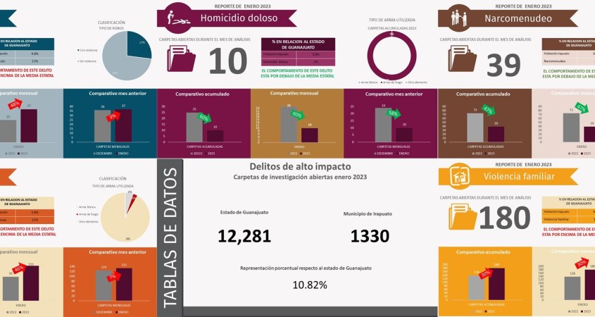 El observatorio ciudadano Irapuato ¿cómo vamos? presenta su reporte de incidencia delictiva del municipio de Irapuato correspondiente al mes de enero 2023 destacando los siguientes datos: