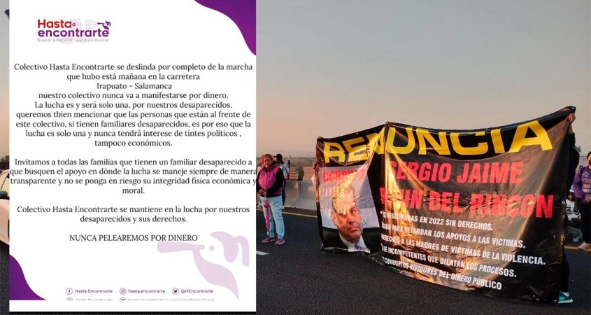El ‘Proyecto de Búsqueda’, el colectivo ‘Hasta Encontrarte’ de Irapuato, y el Colectivo ‘Buscando con el Corazón’, junto a la ‘Plataforma por la Paz’, se deslindaron de la manifestación del Colectivo Sembrando Comunidad y Memoria en Salamanca e Irapuato contra de Jaime Rochin del Rincón, Comisionado del CEAIV Guanajuato. También se denunciaron presuntos fraudes en el actuar de ciertos colectivos.