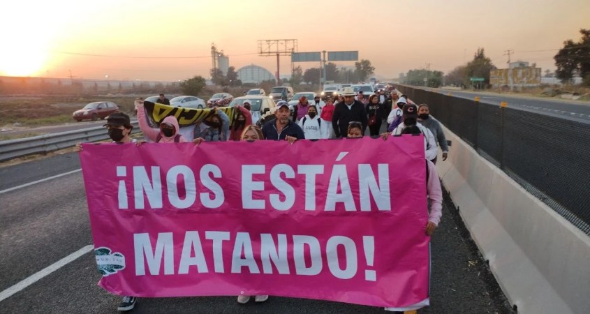 Integrantes del Colectivo Memoria, Justicia y Comunidad, encabezados por José Gutiérrez, marcharon de Salamanca e Irapuato y se encontraron en el puente del crucero de El Chico, sobre la vía del tren, dónde se mantienen plantados.