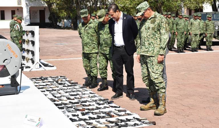 Ejercito mexicano realizo la destrucción de más de 800 armas de fuego, que fueron decomisadas por las diferentes instancias de seguridad y Fiscalía del Estado, así como la Fiscalía General de la Republica, en un evento realizado en la XVI Zona Militar ubicado en la comunidad de Sarabia.