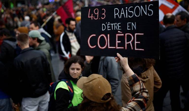 La víspera, el presidente liberal Emmanuel Macron decidió adoptar su reforma –cuya medida más simbólica es retrasar la edad de jubilación de 62 a 64 años–, sin someterla al voto de los diputados, al temer una derrota en el Parlamento, en virtud de un mecanismo legal pero controvertido: el artículo 49.3 de la Constitución.