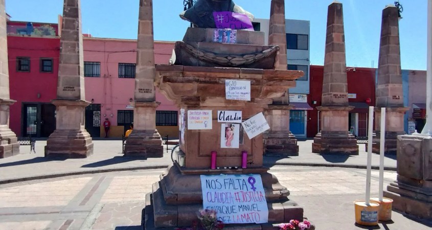 En el monumento a Miguel Hidalgo de la Plaza Cívica del mismo nombre, se colocaron flores, veladoras, carteles y la fotografía de Claudia, para exigir justicia y castigo para el responsable de lo que consideran se trató de un feminicidio.